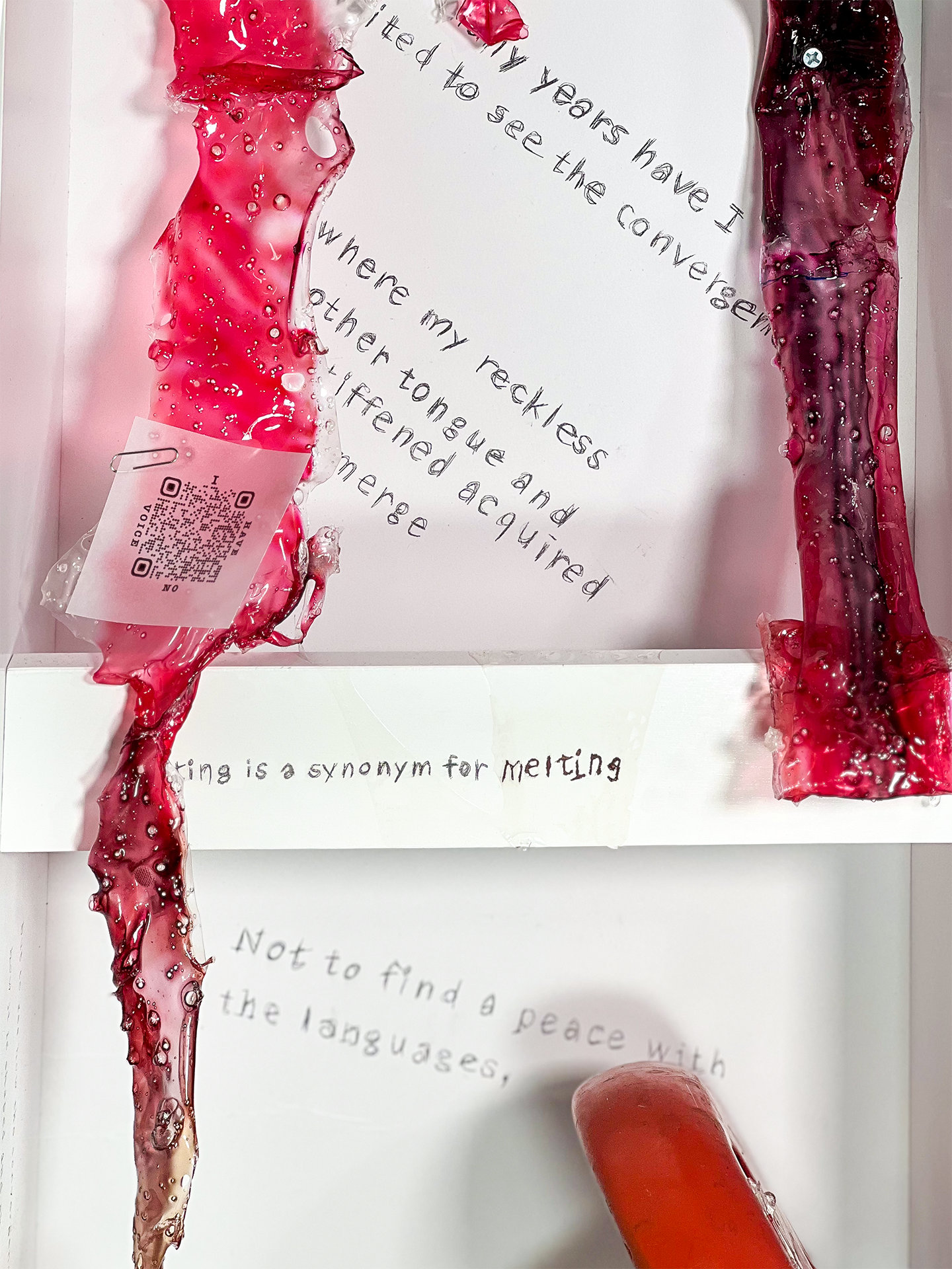 When your tongue stutters, you feel an uneasy rambling at its tip, something that is hard for others to notice, but that you realize is growing more and more. A melancholy lingers, born from that experience, as an indication that you have words eager to be spoken, yet always followed by hesitation and self-protective mechanisms. The rugged journey through which the words slowly and uncomfortably come out of your mouth may ease you or leave you with a certain aftertaste. The aftertaste is tangled in politics, the colonial history of the “global” languages and the binary norms delineating “perfect” and “flawed” utterances.